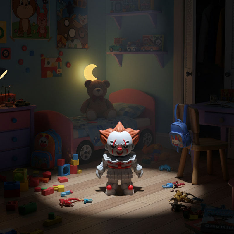 Say hello to Pennyz – the clown who escaped the lab’s “entertainment department” after one too many test subjects ran screaming. Now, he’s bringing his chaotic charm straight to your desk. With his fiery hair, wicked grin, and love for jump scares, Pennyz is equal parts prankster and performer.